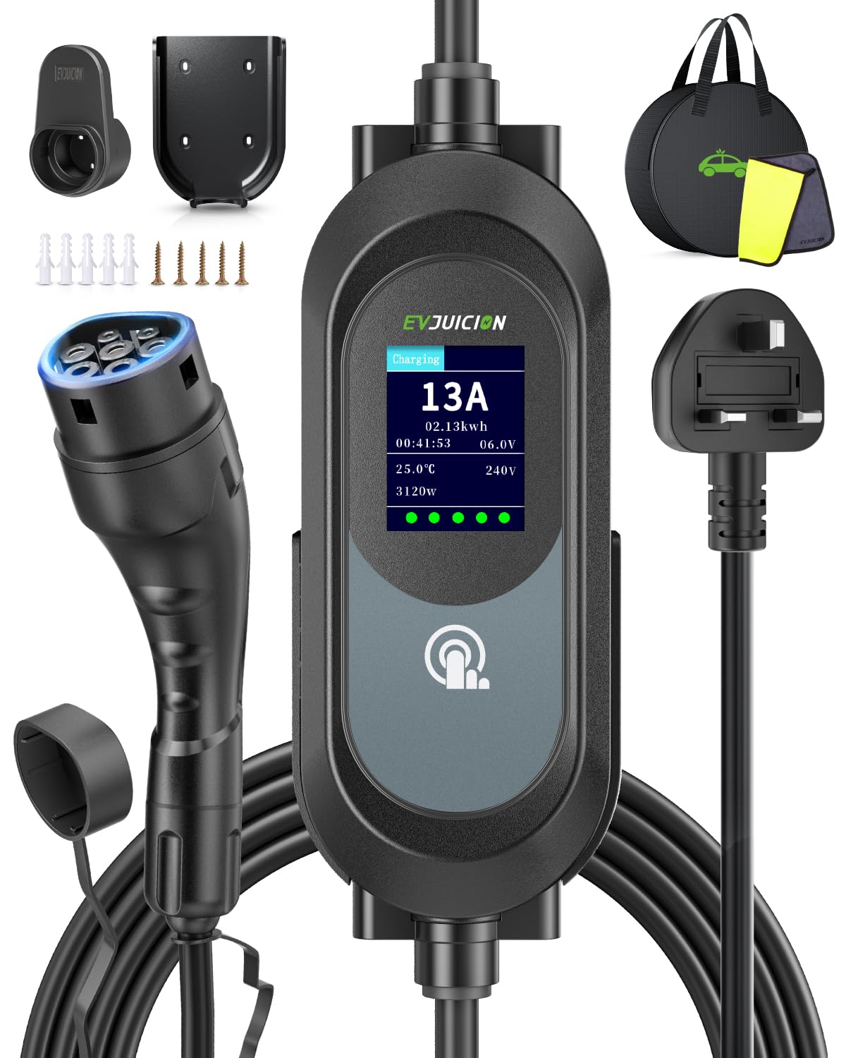 This electric car charger is designed for efficient charging of electric vehicles and plug-in hybrids. It features a 15M Type 2 cable and offers adjustable power settings for optimal charging.
