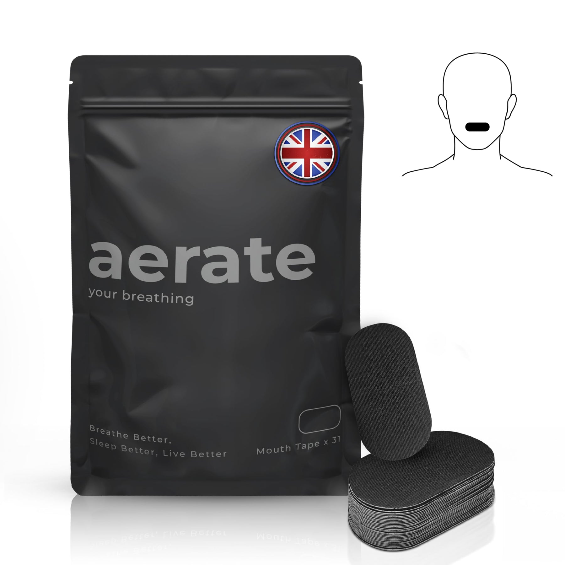 Aerate Mouth Tape - 31 Strips - Gentle Adhesion - Black