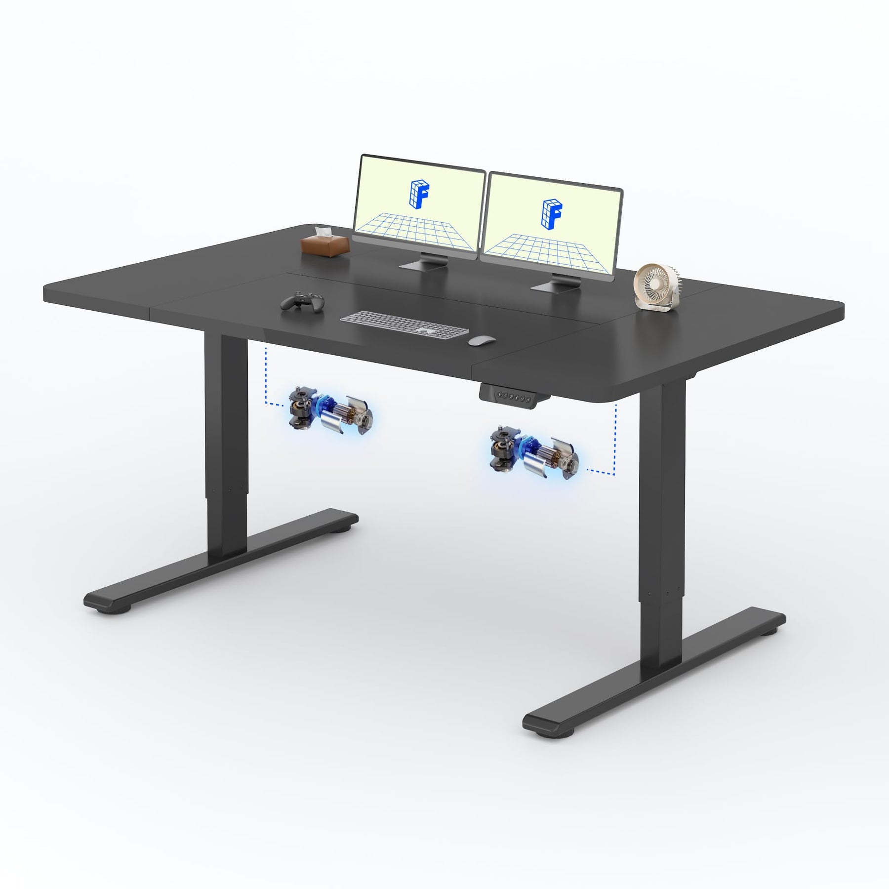 - Dual motors for quiet and efficient height adjustments.